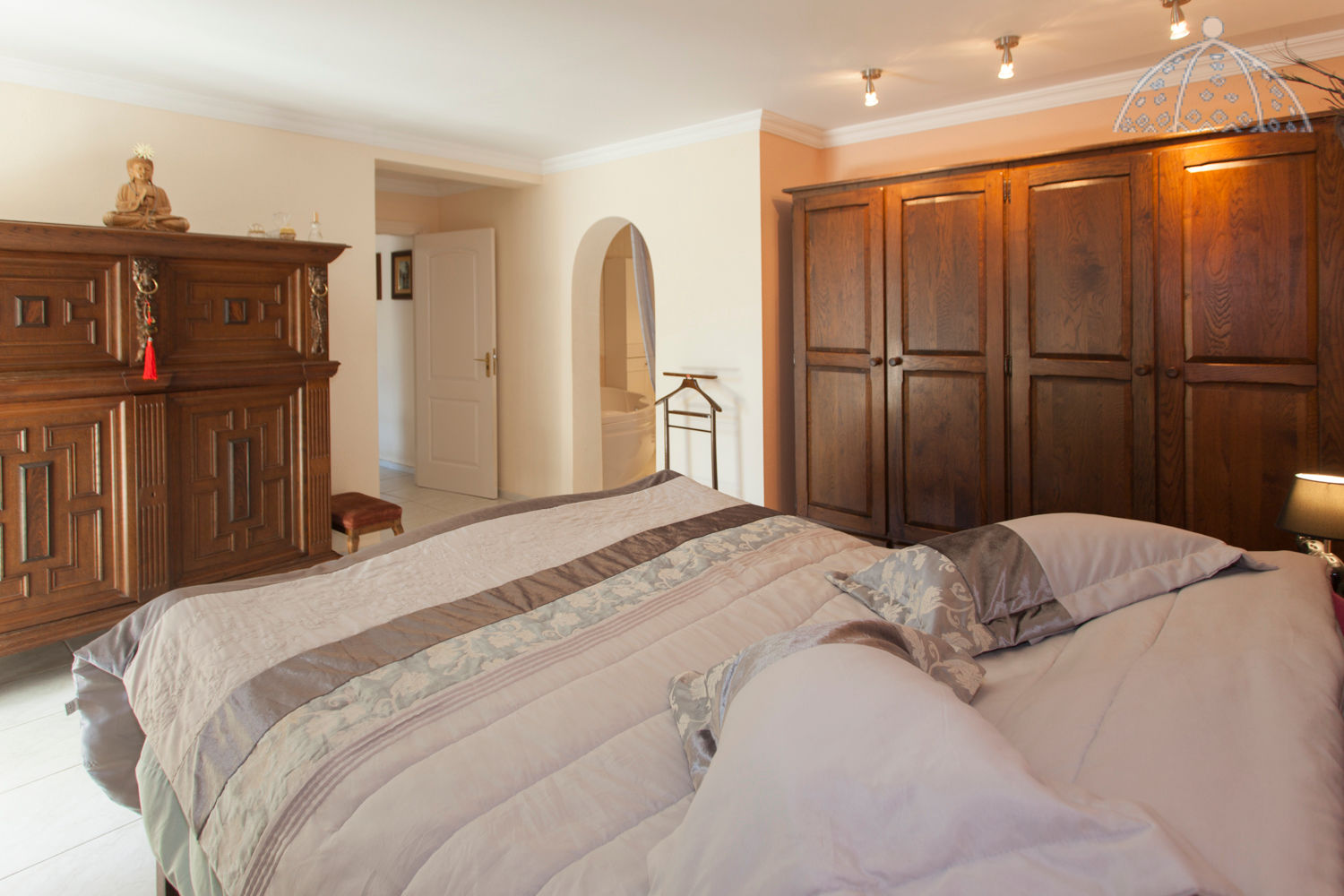 • baño en suite con lavabo doble, bañera, ducha, bidet y aseo