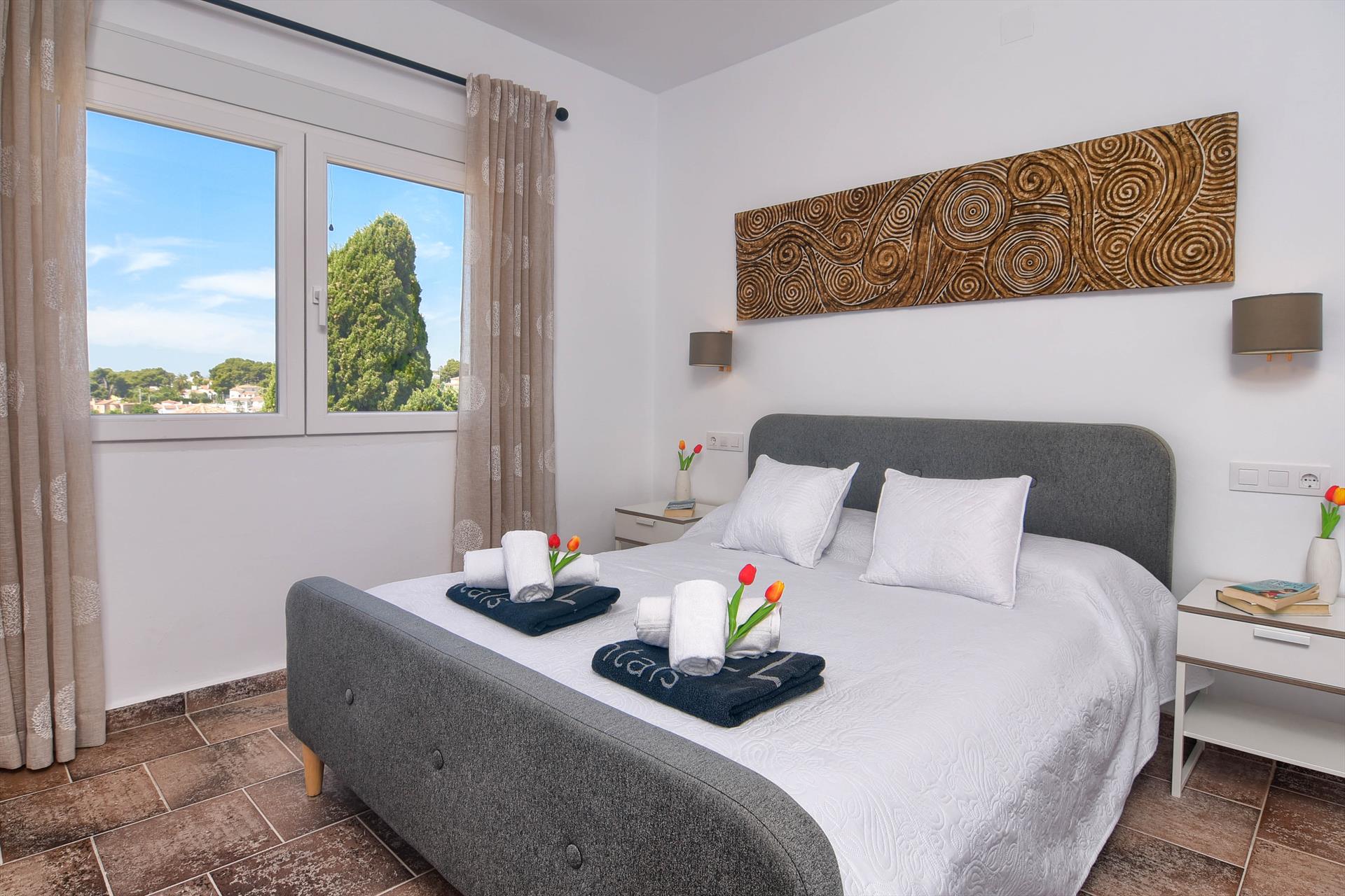 La villa cuenta con 5 dormitorios y 3 baños, distribuidos en 2 niveles. El alojamiento ofrece privacidad, un jardín con césped, grava y árboles, y maravillosas vistas al mar. Su comodidad y la proximidad a la playa, zonas comerciales, actividades deportivas, instalaciones de entretenimiento, lugares para salir, puntos de interés y cultura hacen de esta villa un lugar ideal para pasar unas vacaciones en España con familia o amigos.