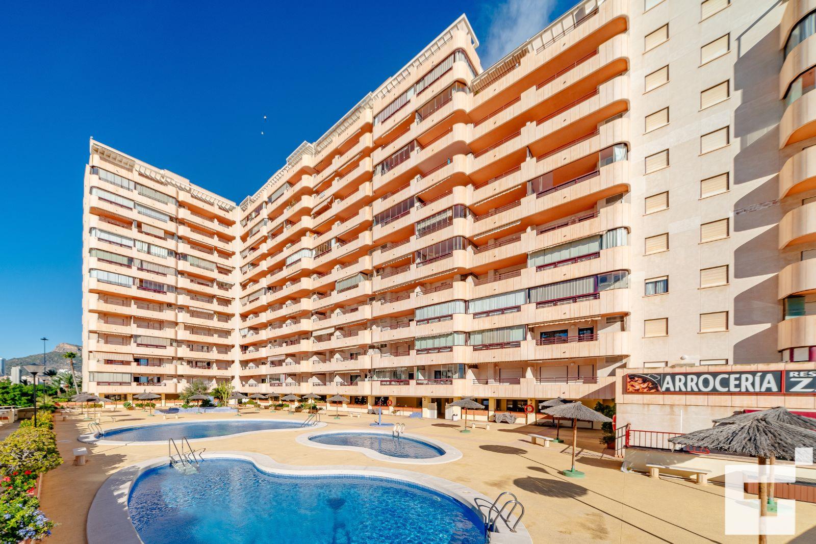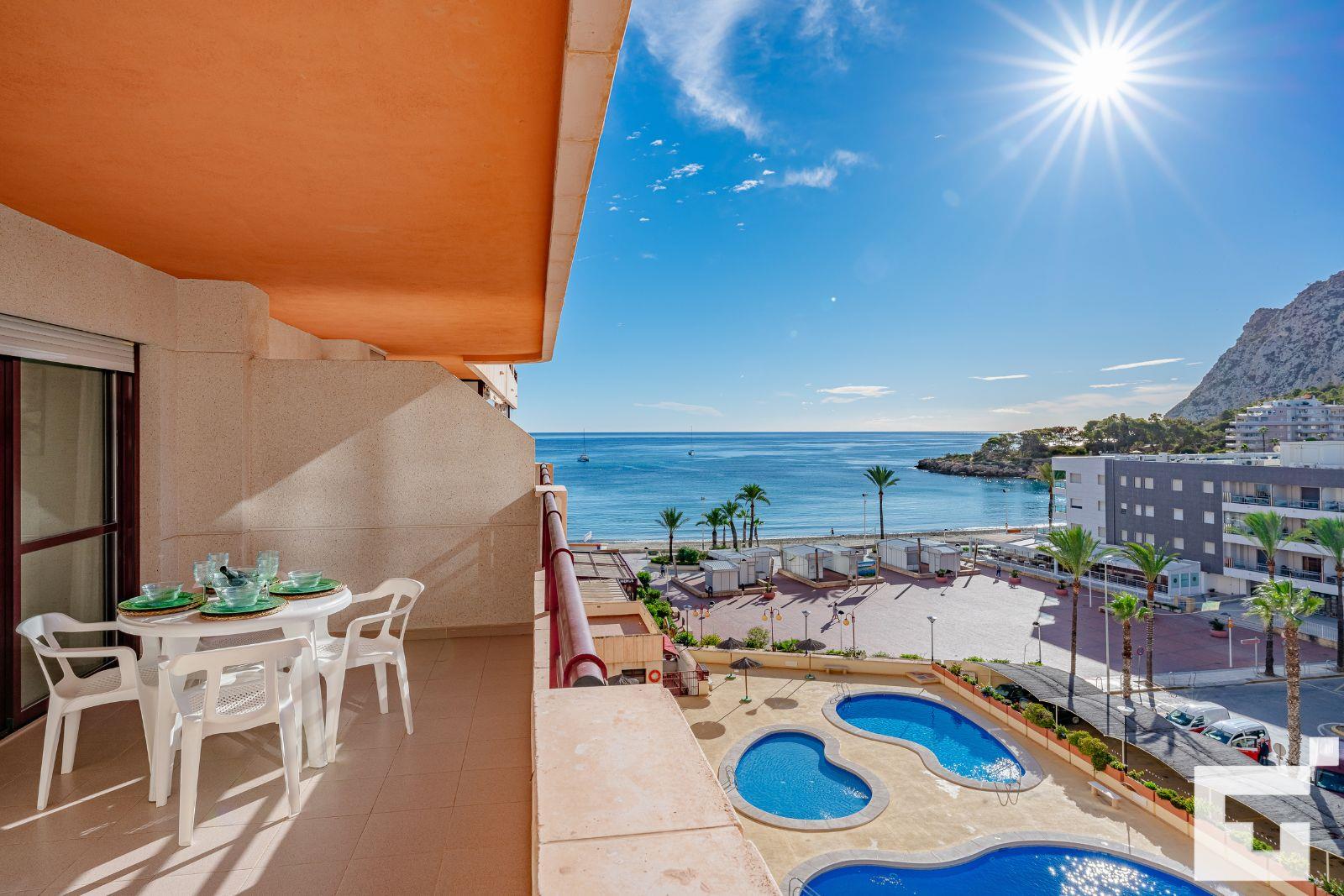 Apartamento con piscina comunitaria en Calpe, Costa Blanca, España para 4 personas. El apartamento está situado cerca de restaurantes y bares, tiendas y supermercados, y se encuentra a 25 m de la playa La Fossa / Levante.