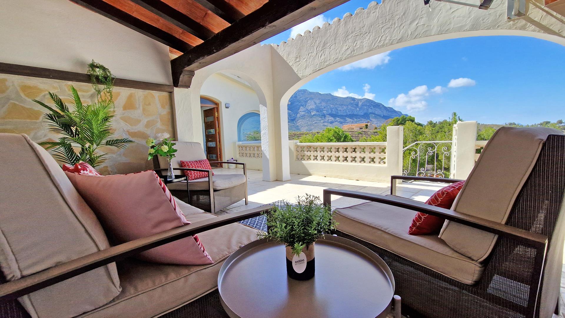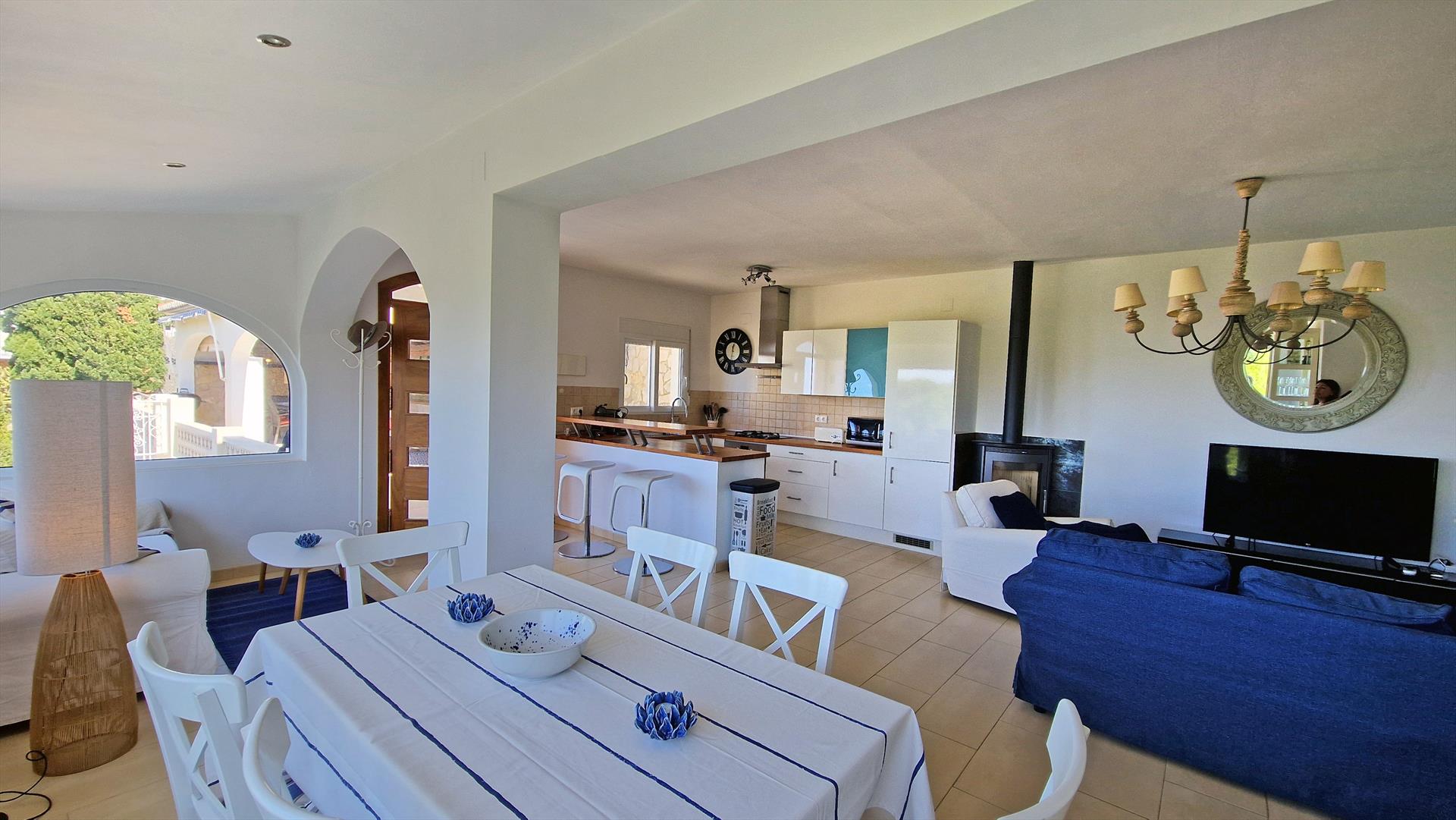 Maravillosa y lujosa villa en Denia, Costa Blanca, España, con piscina privada para 6 personas. La casa está situada en una zona de playa residencial y montañosa, a 3 km de la playa de Las Rotas.