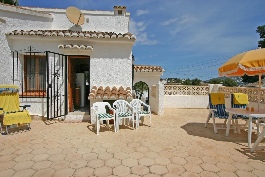 Hermosa y clásica villa con piscina comunitaria en Moraira, Costa Blanca, España, para 6 personas. La casa está situada en una zona residencial y a 1 km de la playa de Las Rocas.