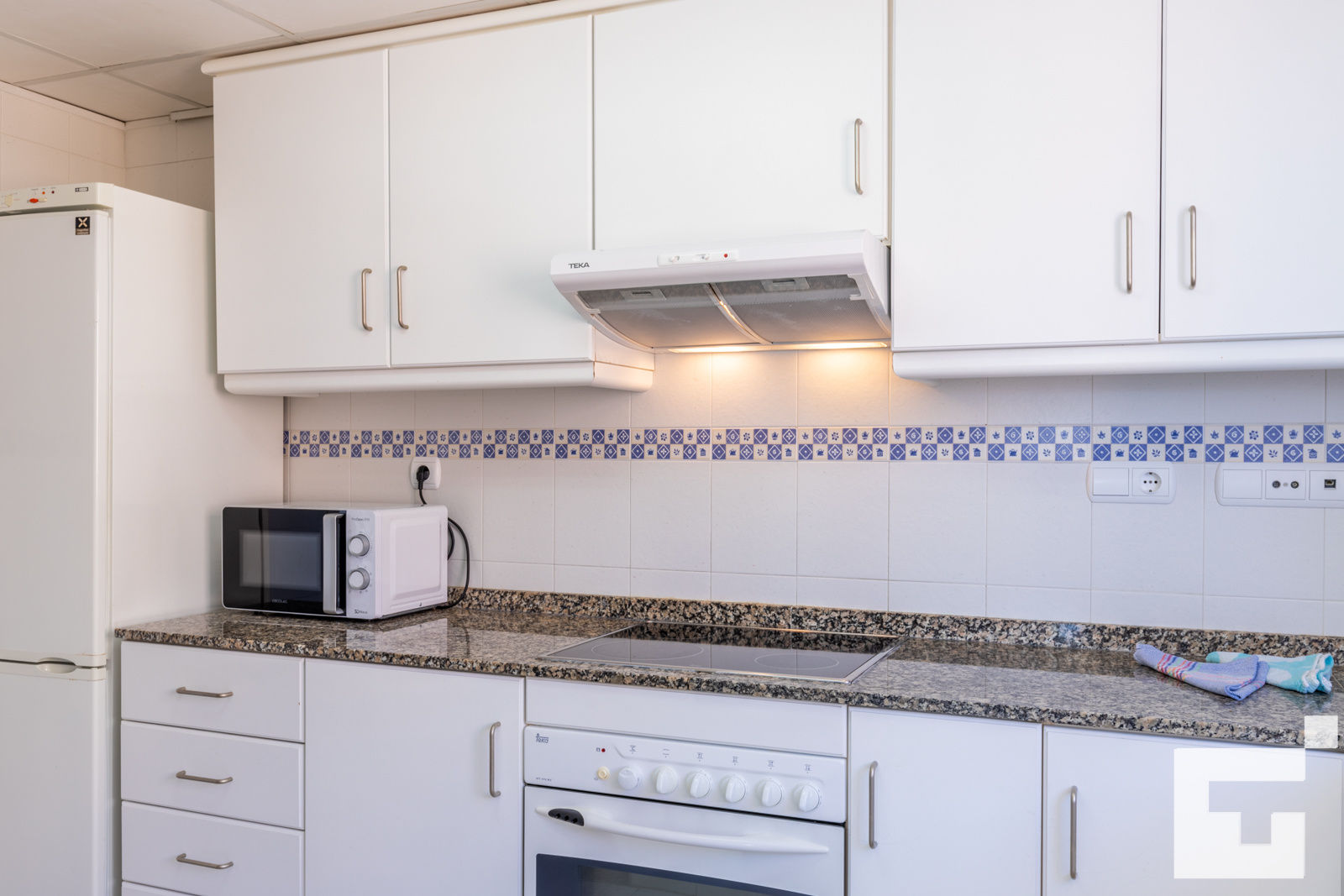 • cocina con vitrocerámica, horno eléctrico, microondas, lavavajillas, refrigerador, congelador, cafetera, batidora, tostadora y exprimidor