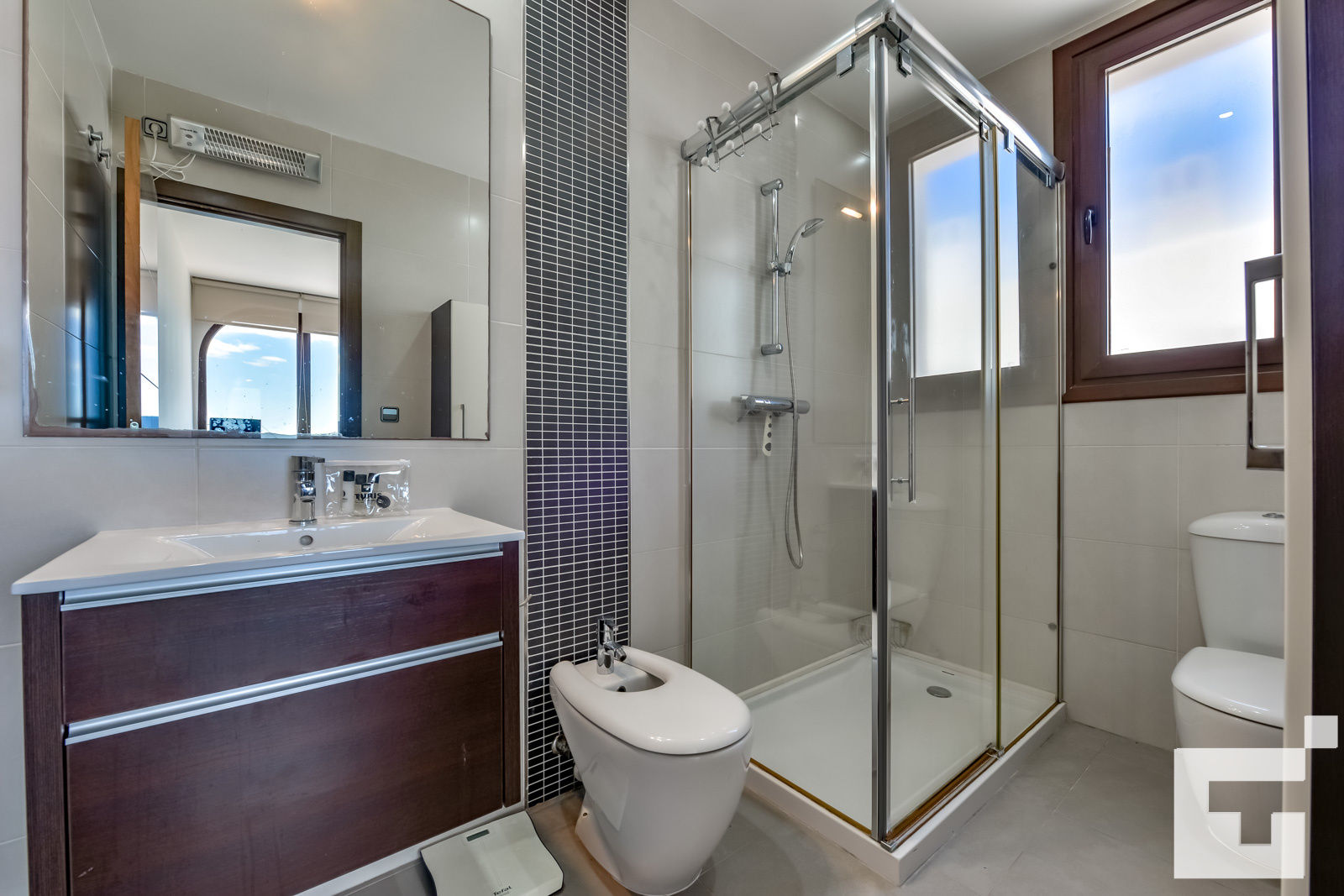 • baño en suite con lavabo individual, ducha, bidet y aseo