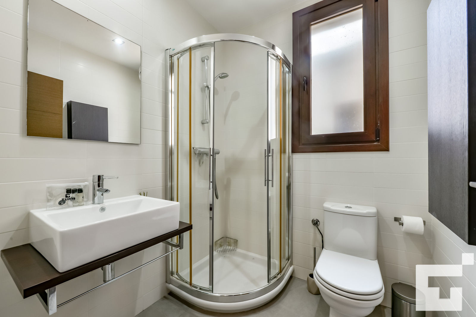 • baño con lavabo individual, ducha y aseo