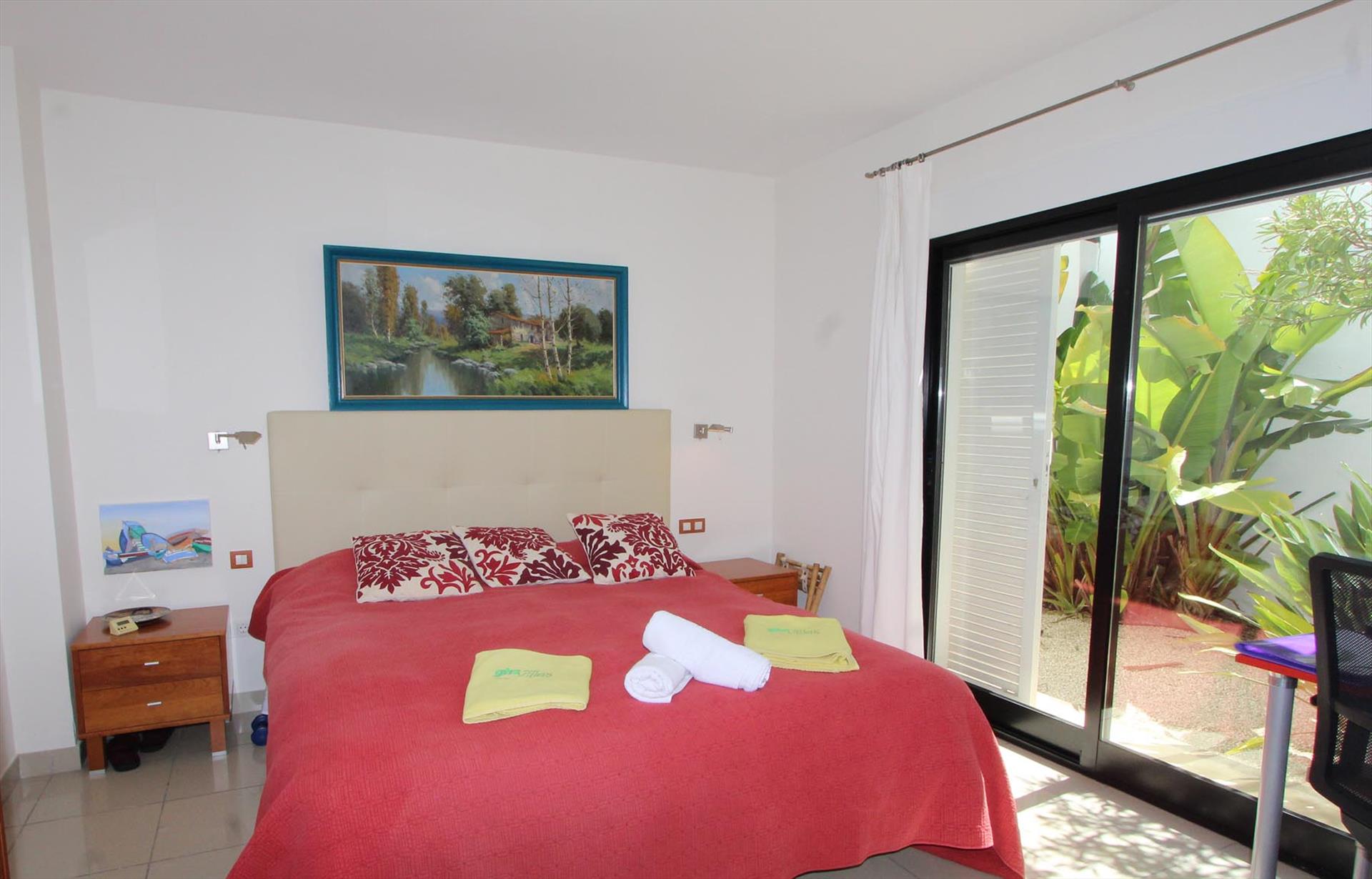 • dormitorio con aire acondicionado y cama queen size (medida 200 por 150 cm)