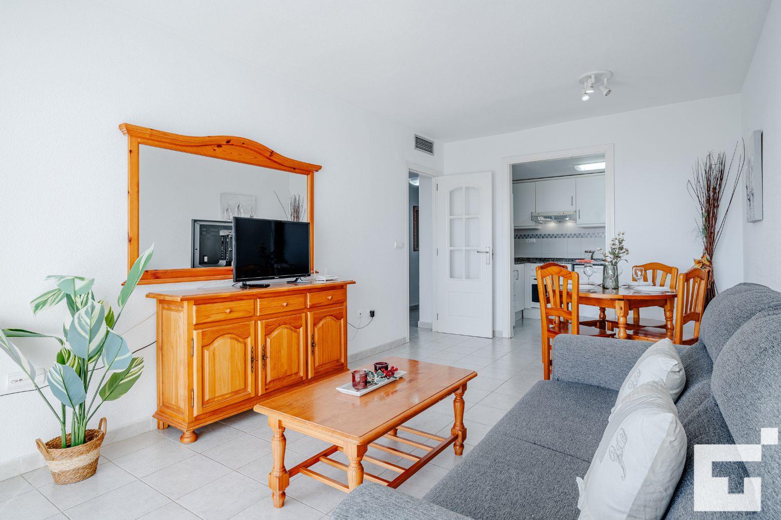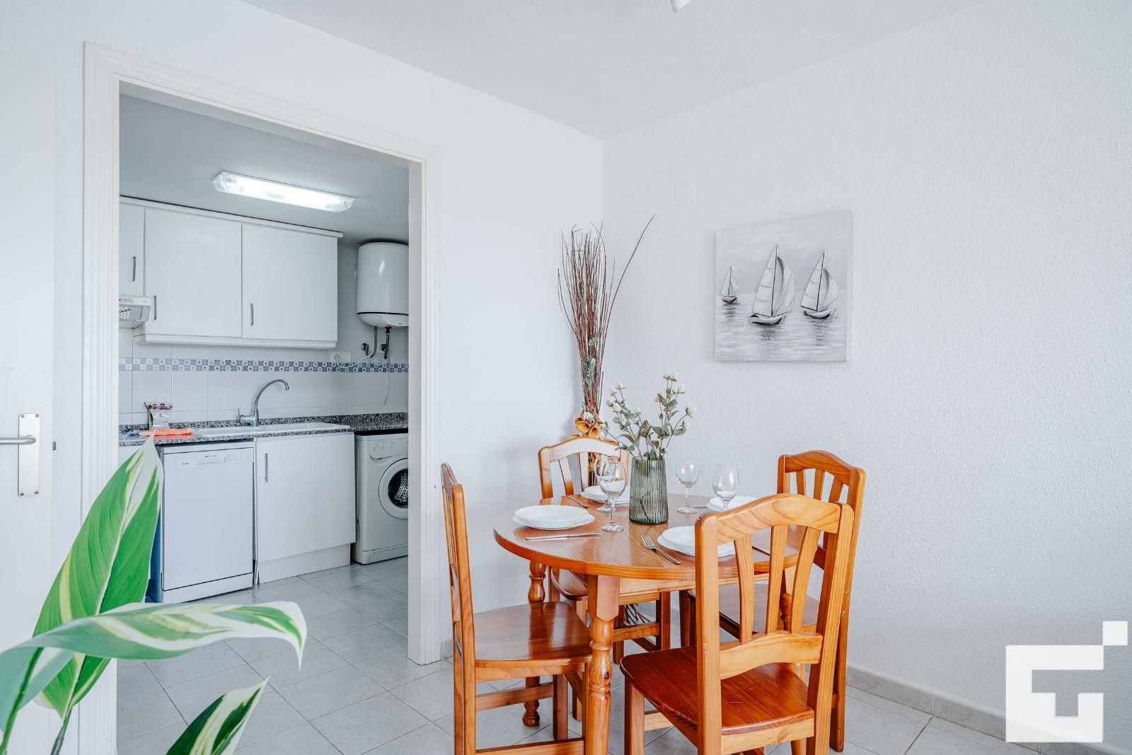Das Apartment verfügt über 1 Schlafzimmer und 1 Badezimmer. Die Unterkunft bietet Privatsphäre, einen gepflegten Gemeinschaftsgarten mit Bäumen und wunderbarem Blick auf den Strand und das Meer. Der Komfort und die Nähe zum Strand, zu Einkaufsbereichen und Freizeitmöglichkeiten machen dieses Apartment zu einem ausgezeichneten Ort für Ihren Urlaub in Spanien mit Familie oder Freunden.