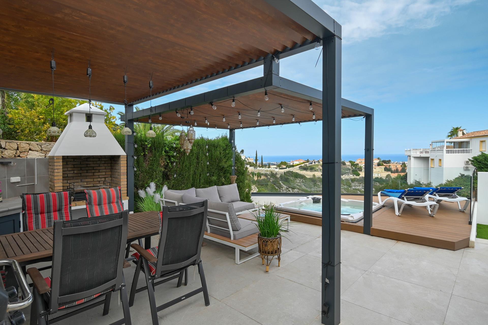Die Villa verfügt über 3 Schlafzimmer und 3 Badezimmer, verteilt auf 2 Etagen. Die Unterkunft bietet Privatsphäre, einen schönen Pool und herrliche Ausblicke auf das Meer. Der Komfort und die Nähe zu Sportmöglichkeiten, Sehenswürdigkeiten und Kultur machen diese Villa ideal, um mit Familie oder Freunden Ihren Urlaub in Spanien zu verbringen.