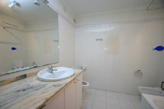 - Badezimmer mit Doppelwaschbecken, Bad/Dusche-Kombination, Bidet und WC