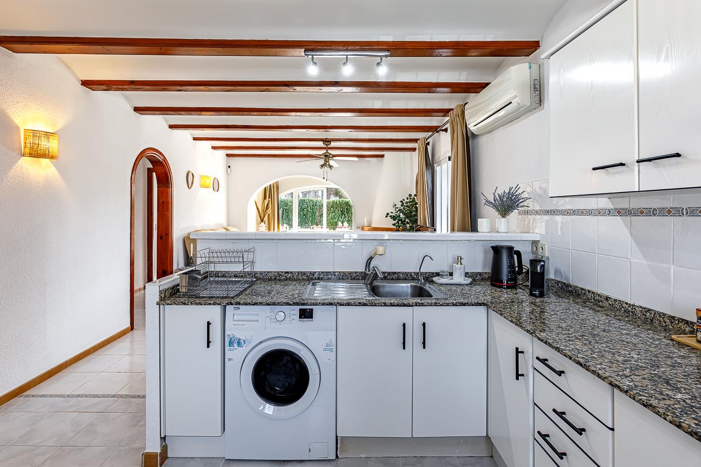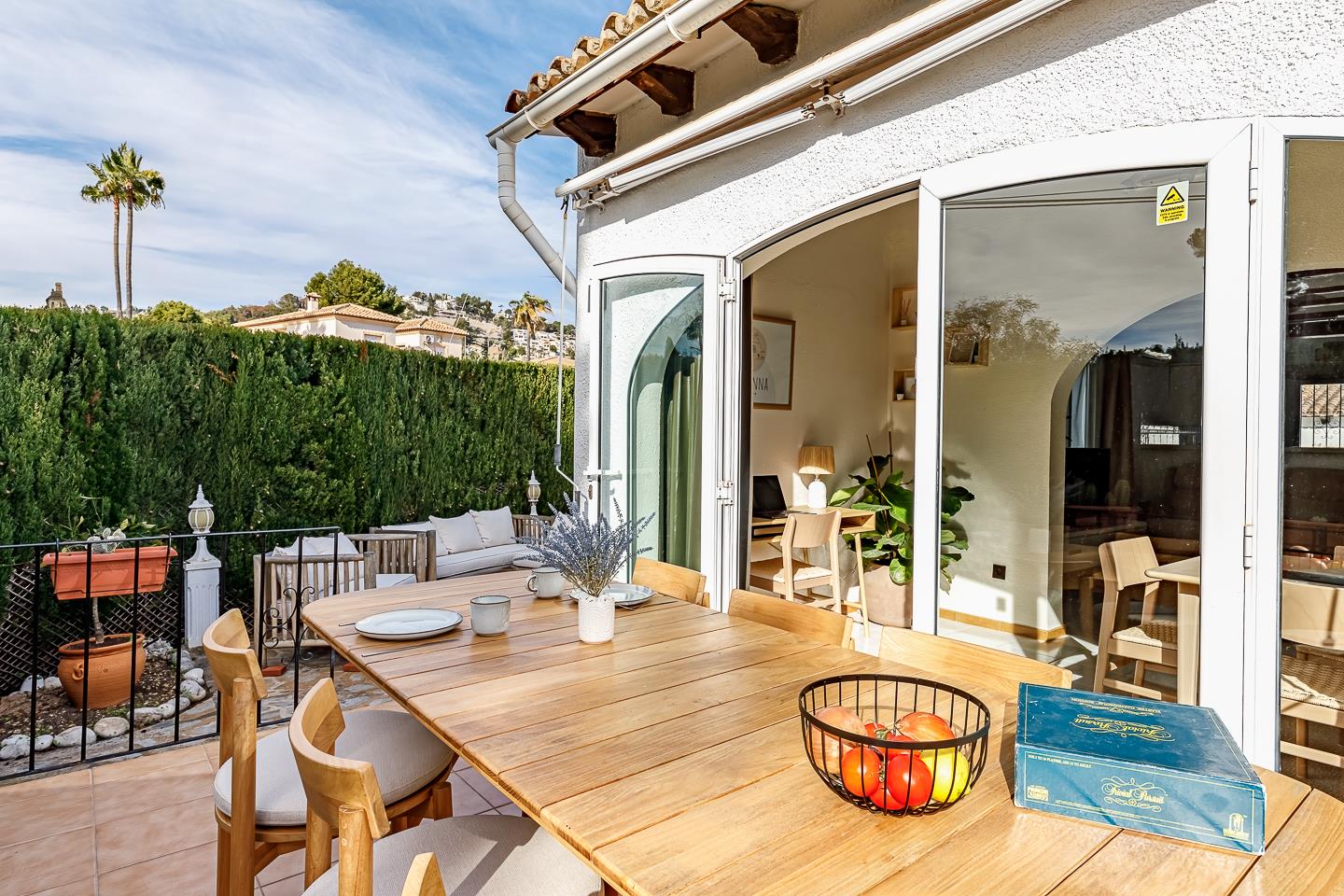 Wunderschönes und freundliches Ferienhaus in Teulada, Costa Blanca, Spanien, mit Gemeinschaftspool für 4 Personen. Das Haus liegt in einer hügeligen, küstennahen Wohngegend, in der Nähe eines Golfplatzes und 2 km vom Strand Benissa/Moraira entfernt.