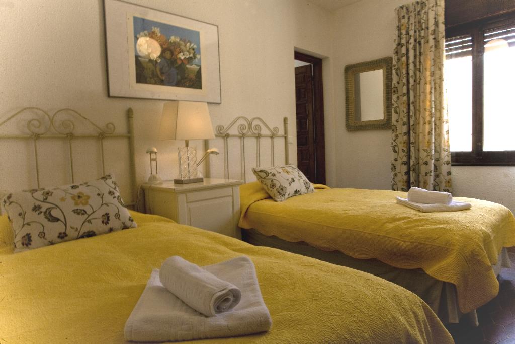 • bedroom with air conditioning, with 2 single beds and en-suite bathroom