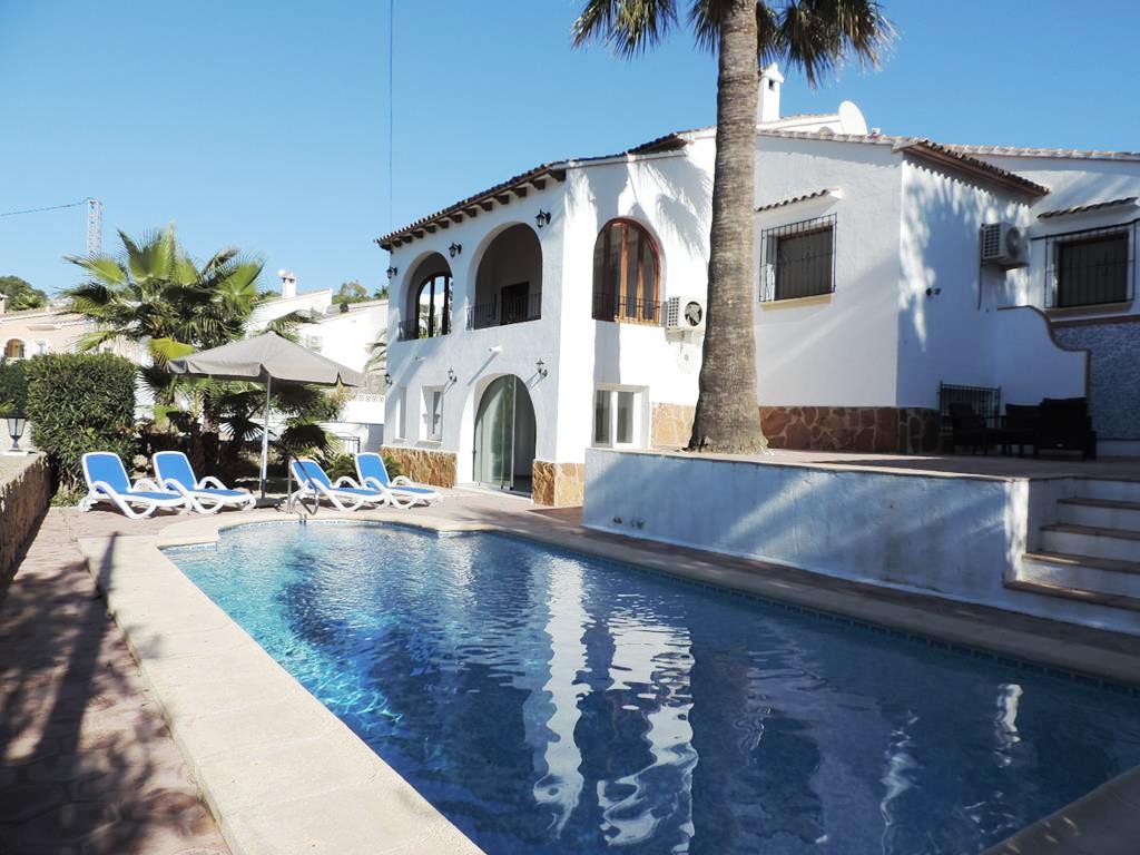 Beautiful holiday house with private pool in Benissa, Costa Blanca, Spain for 10 persons. The house is situated in a coastal and residential area and at 1 km from Playa la Fustera beach. The house has 5 bedrooms and 6 bathrooms, spread over 2 levels. The accommodation offers a beautiful pool and a view of the valley. The vicinity of the beach and places to shop makes this a fine holiday house to spend your holidays in Spain with family or friends.