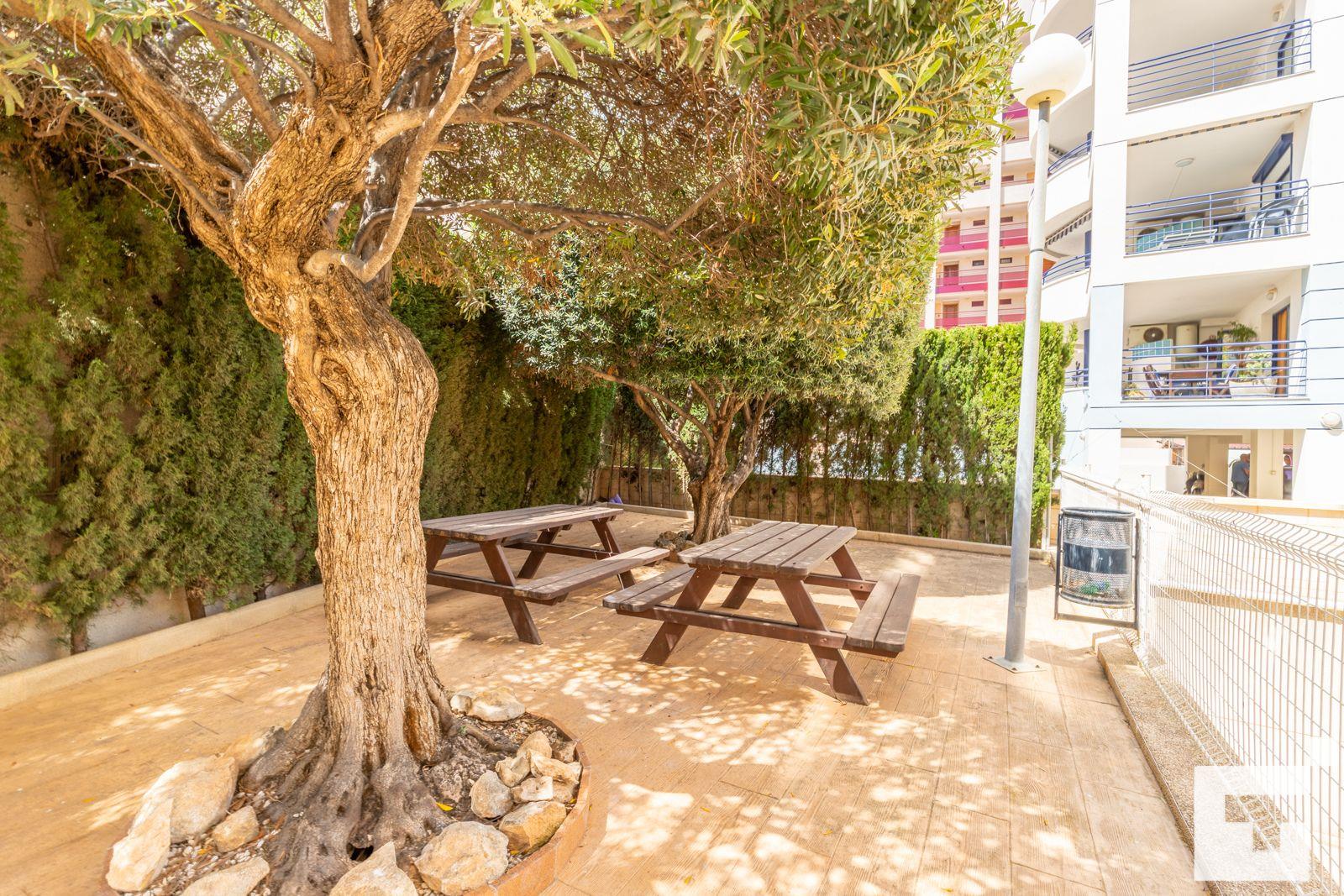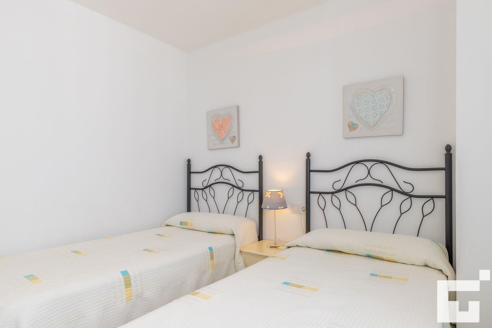 The apartment has 2 bedrooms and 2 bathrooms. The accommodation offers privacy, a lawned communal garden with trees, wonderful views of the bay, the beach and the sea, and beautiful views of the pool and the garden. Its comfort and the vicinity of the beach, places to shop and places to go out make this a fine apartment to spend your holidays in Spain with family or friends.