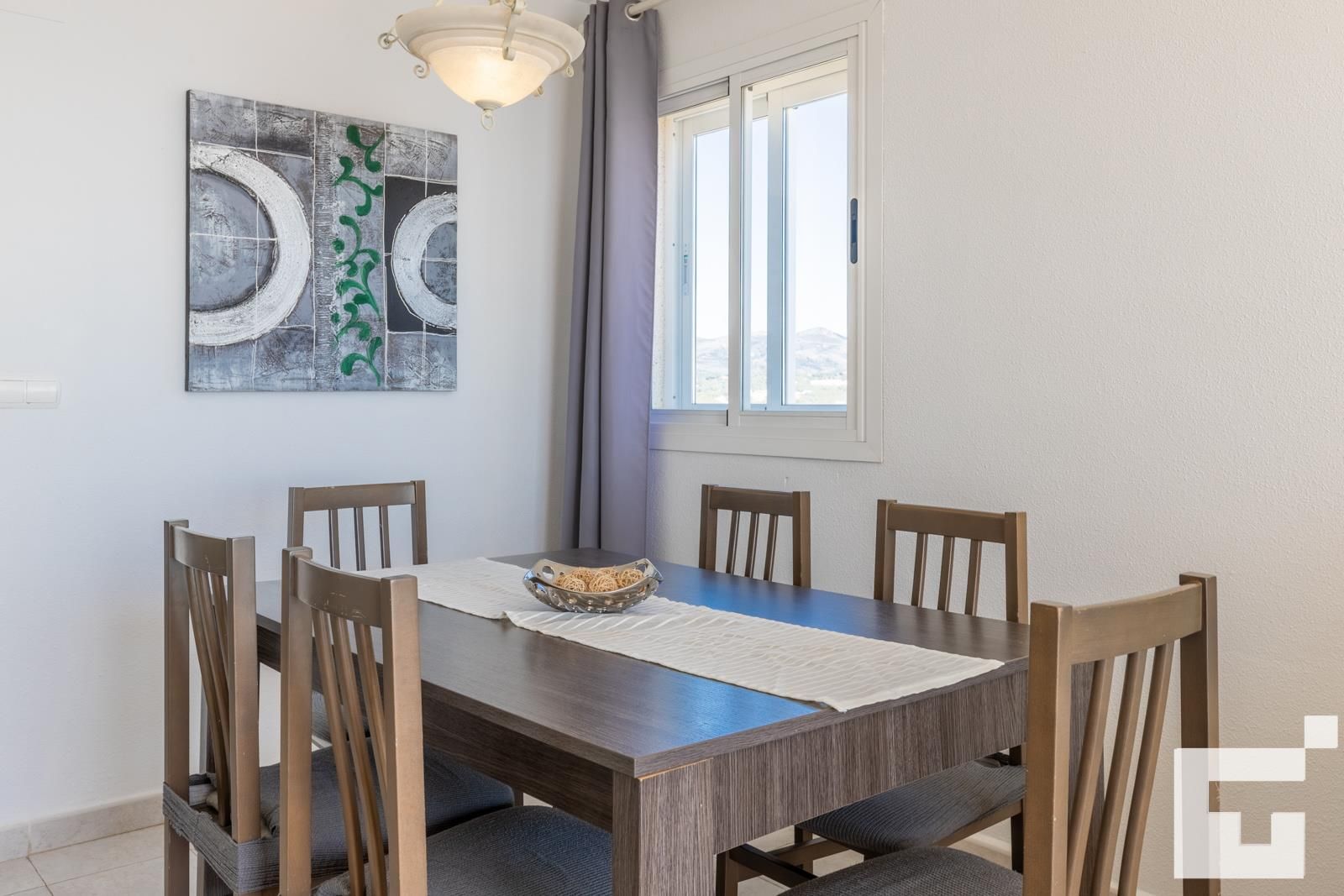 The apartment has 3 bedrooms and 2 bathrooms. The accommodation offers privacy, a lawned garden, a communal garden, wonderful views of the bay and the sea, and beautiful views of the beach, the mountains, the pool, and the garden. Its comfort and the proximity to the beach, places to shop, sports activities, and places to go out make this a fine apartment to spend your holidays in Spain with family or friends.