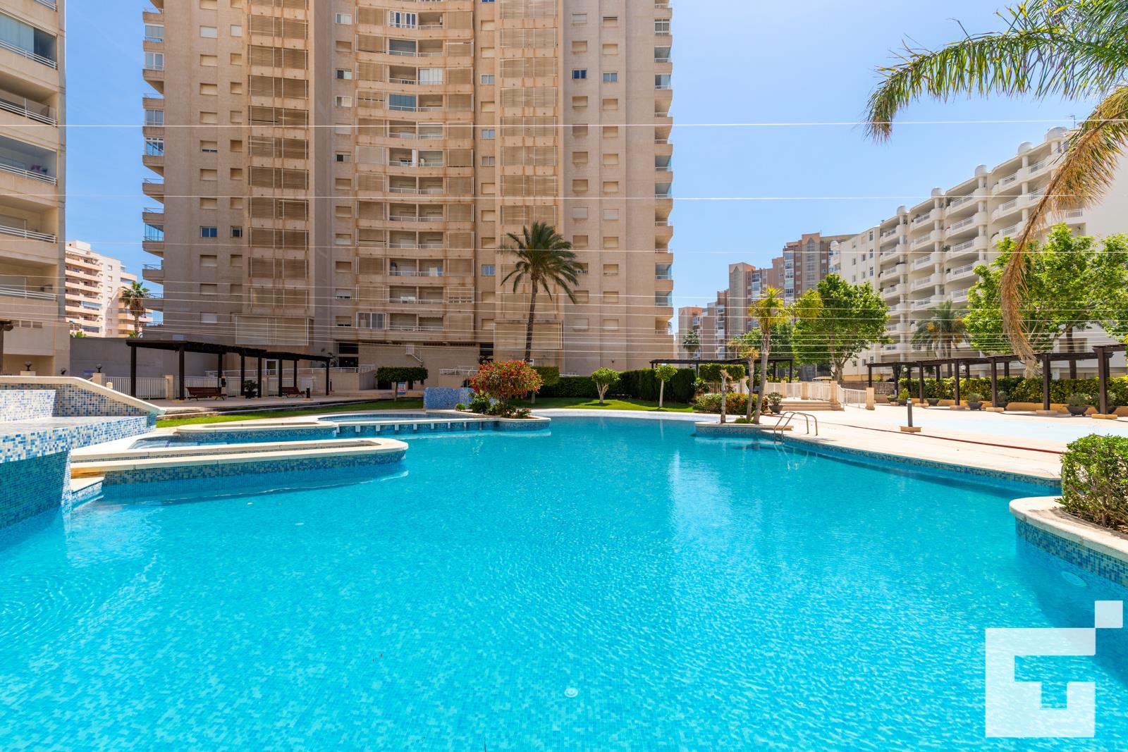 Apartment in Calpe, Costa Blanca, Spain with a communal pool for 7 persons. The apartment is situated close to restaurants and bars, shops and supermarkets, and is 25 m from La Fossa / Levante beach.