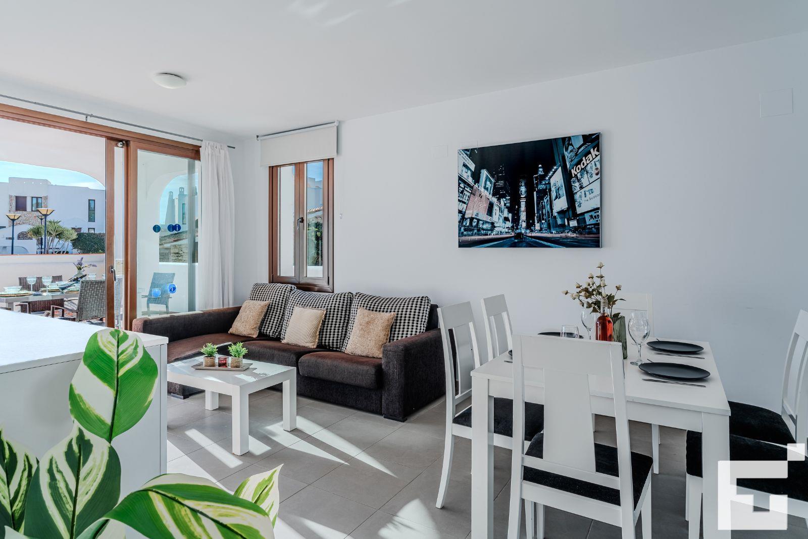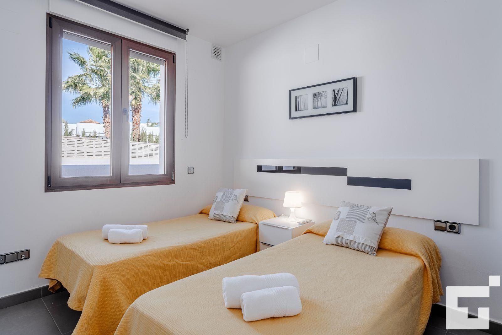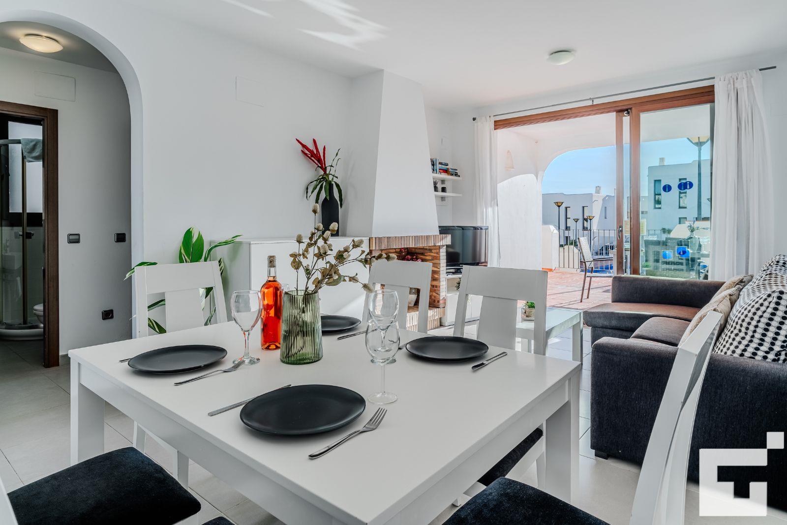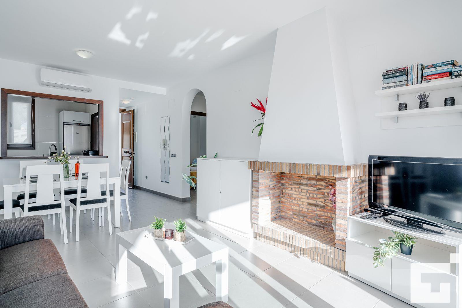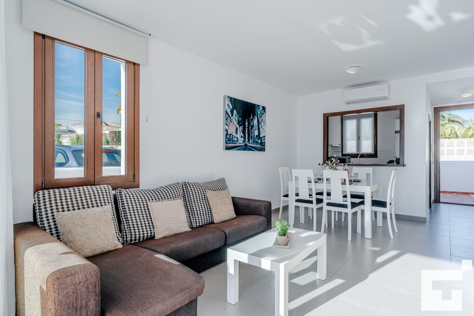 The house has 2 bedrooms and 2 bathrooms. The accommodation offers a wonderful lawned garden and a communal lawned garden. Its comfort and the proximity to the beach, shops and entertainment make this a fine villa to spend your holidays in Spain with family or friends.