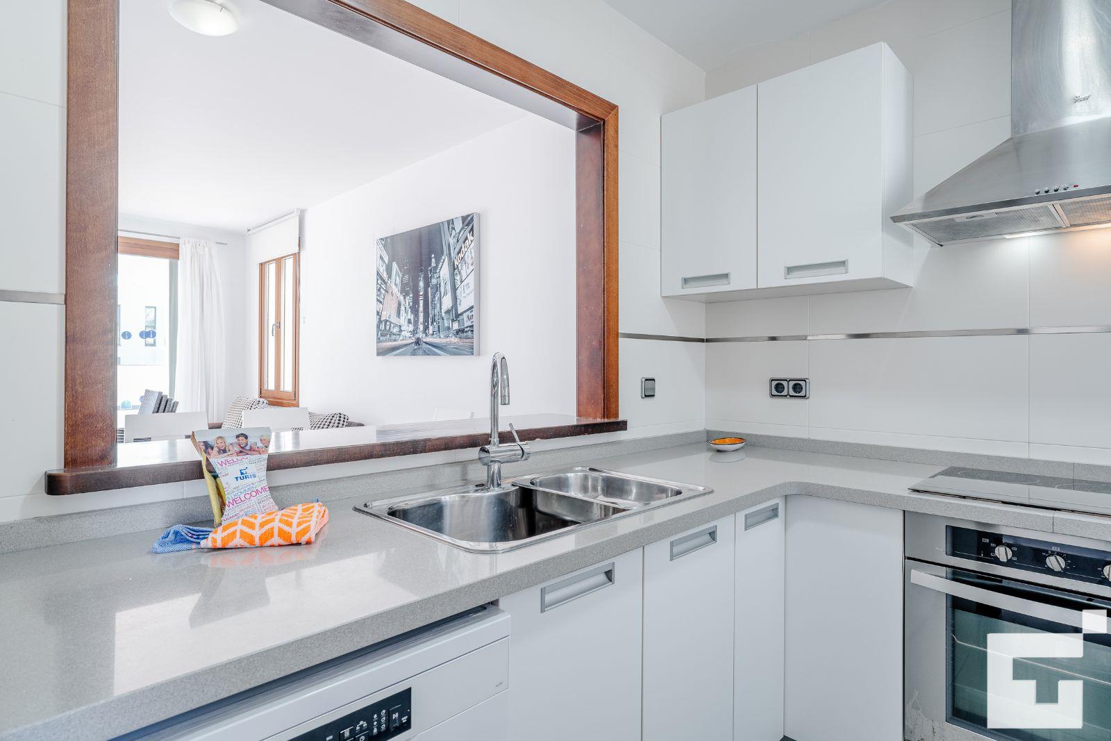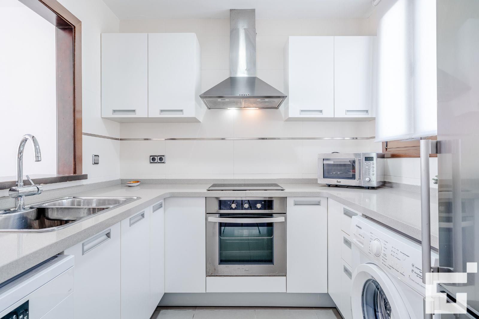 • kitchen with electric hob, electric oven, microwave, dishwasher, refrigerator, freezer, coffee machine, mixer, toaster and juicer