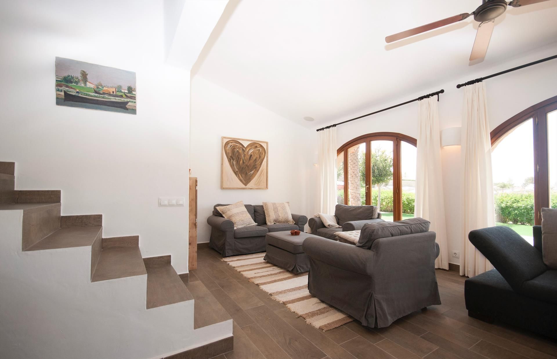 La location a 3 chambres à coucher, 2 salles de bain et 1 toilette pour les invités, réparties sur 2 étages. Le logement offre beaucoup d'intimité, un jardin privé merveilleux avec pelouse, gravier et d´arbres, un jardin communal avec gravier et d´arbres, une piscine merveilleuse et une vue merveilleuse sur la vallée et sur la montagne. Le comfort et le voisinage de la plage et d'activités sportives rendent cette location de vacances un logement idéal pour passer les vacances en Espagne avec votre famille ou vos amis.