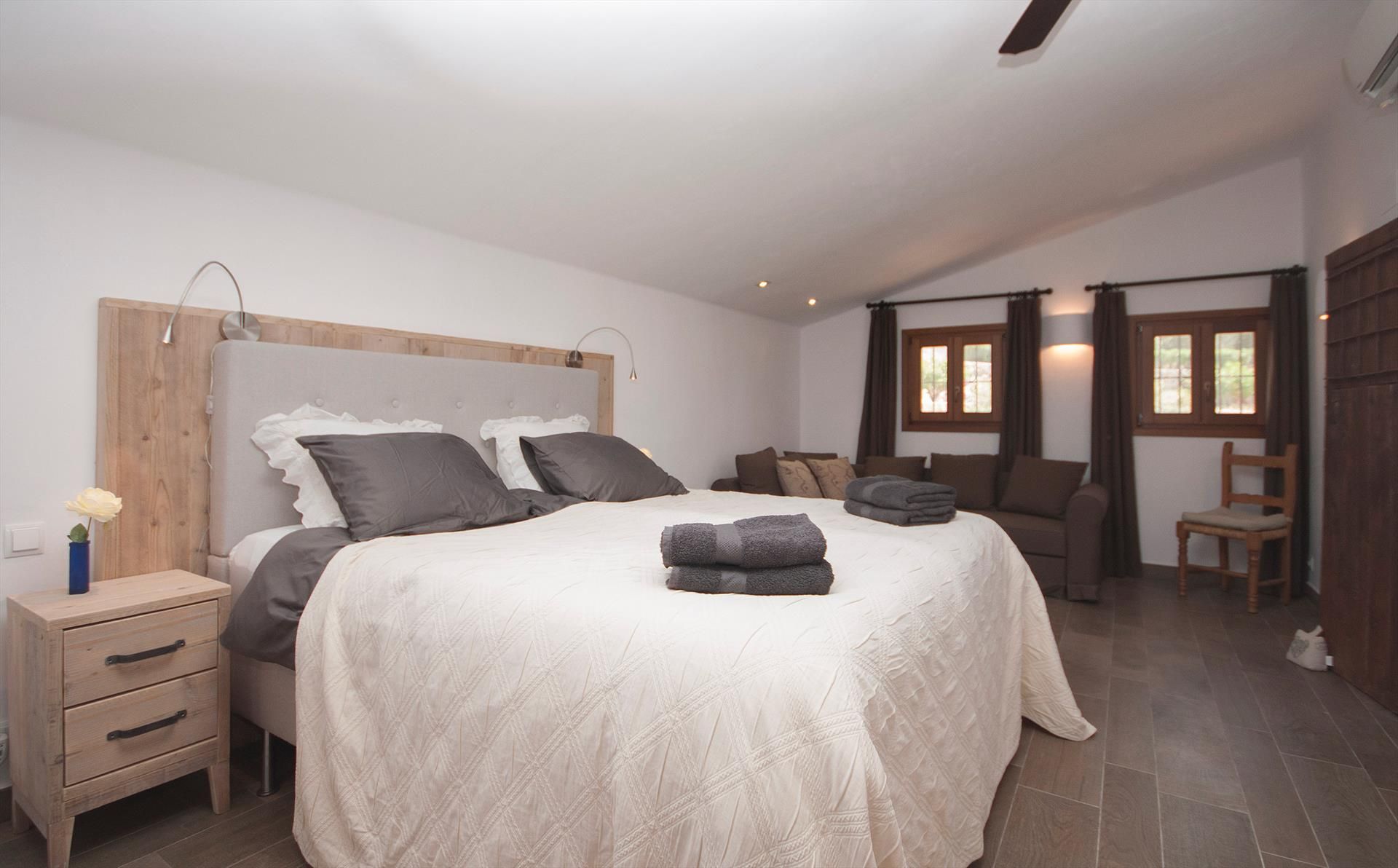 • chambre à coucher climatisée avec lit double, sofa-lit et ventilateur