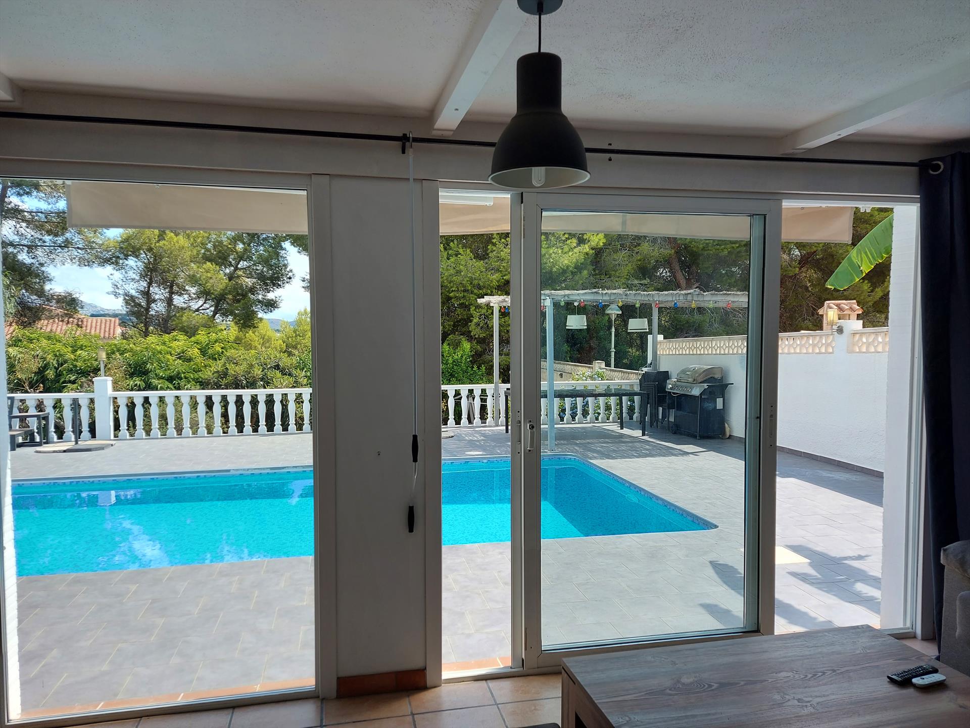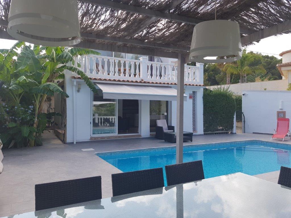 Location de vacances avec piscine privée à Benissa, Costa Blanca, Espagne pour 8 personnes. Le logement est situé dans une région balnéaire et résidentielle, à 3 km de la plage de La Fustera et à 8 km de calpe. La location a 4 chambres à coucher et 2 salles de bain, réparties sur 2 étages. Le logement offre de l'intimité, un beau jardin avec d´arbres et une belle piscine. Le comfort et le voisinage de la plage rendent cette location de vacances un logement convenable pour passer les vacances en Espagne avec votre famille ou vos amis.