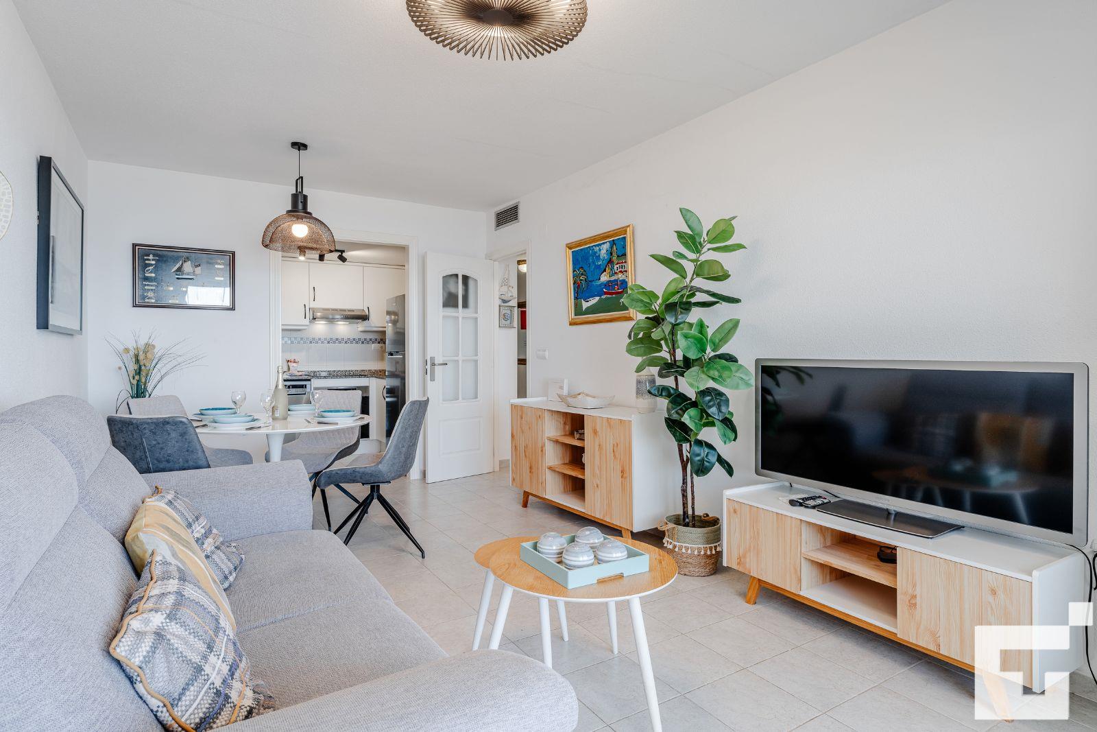 L'appartement comprend 1 chambre et 1 salle de bain. L'hébergement offre beaucoup d'intimité, un beau jardin gazonné avec des arbres, un jardin commun avec pelouses et de magnifiques vues sur la plage et la mer. Son confort et la proximité de la plage, des commerces, des installations de loisirs et des lieux de sortie en font un appartement idéal pour passer vos vacances en Espagne en famille ou entre amis.
