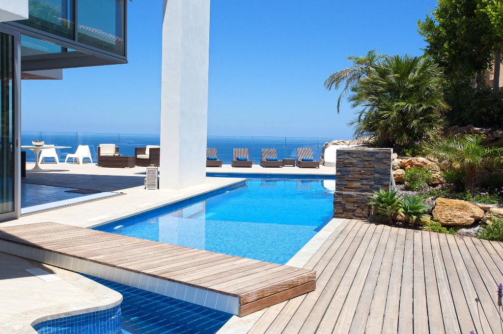 Villa moderne et de luxe avec piscine privée à Javea, Costa Blanca, Espagne pour 8 personnes. La maison de vacances est située dans une région balnéaire et résidentielle.
