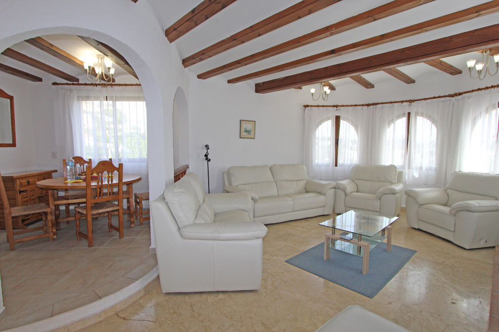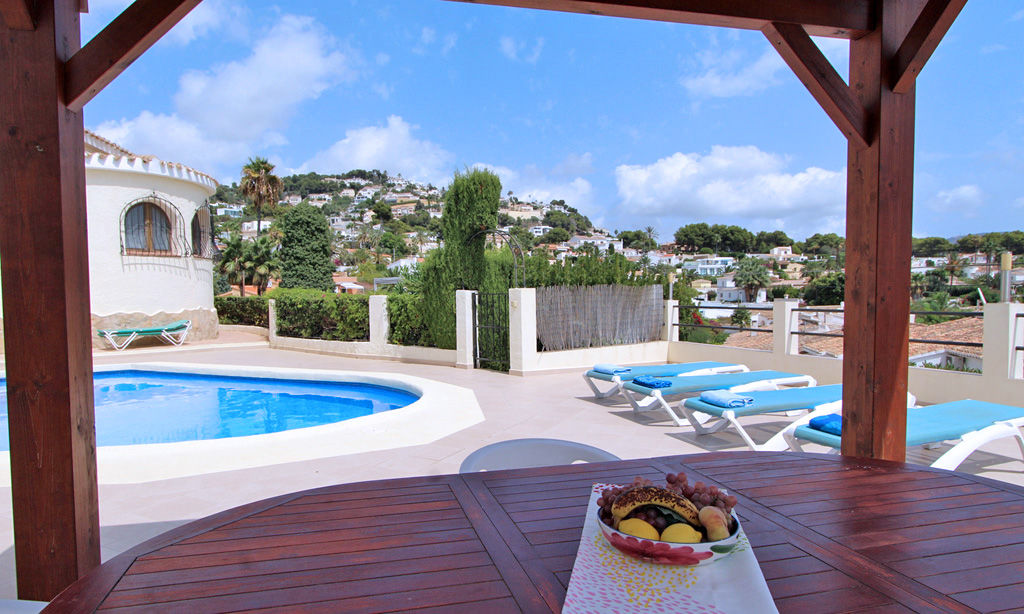 Charmante et confortable villa avec piscine privée à Moraira, Costa Blanca, Espagne, pour 8 personnes. La maison est située dans un quartier résidentiel et se trouve à 3 km de la plage.