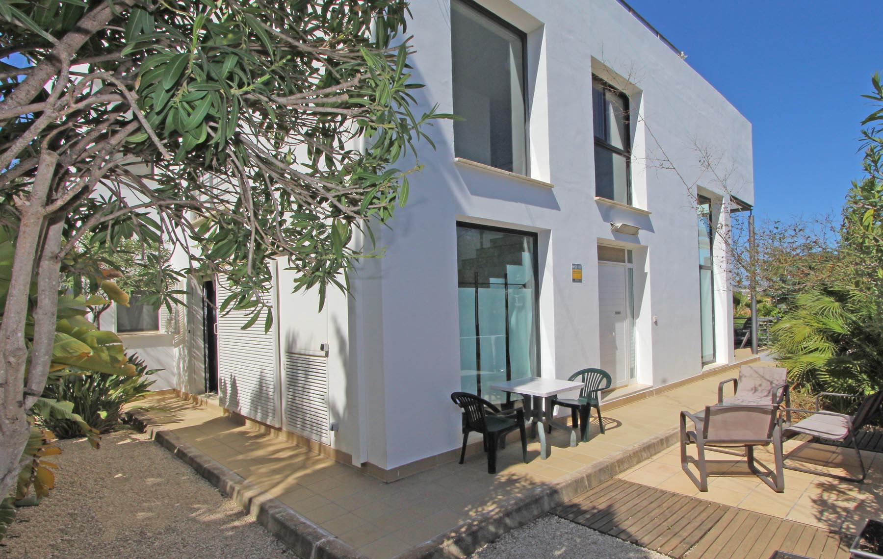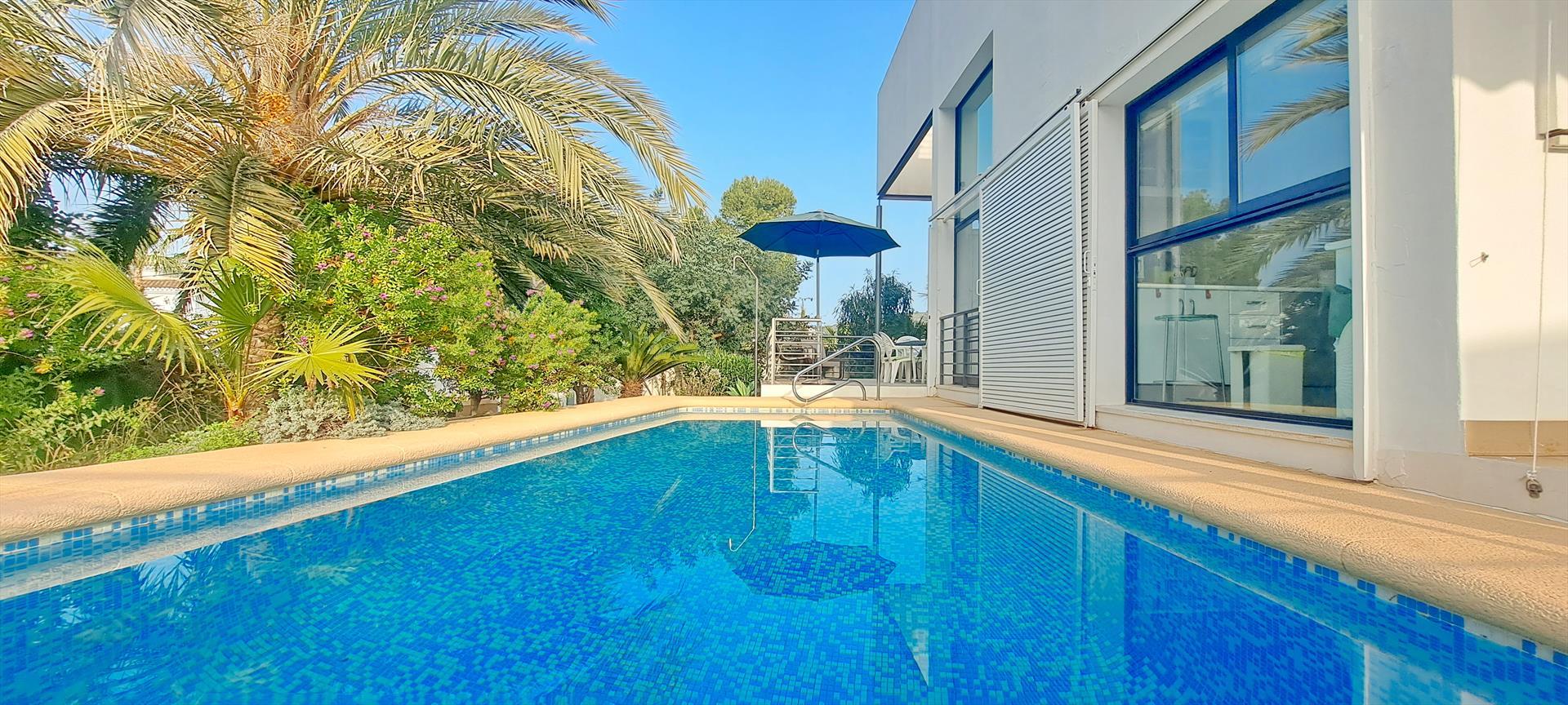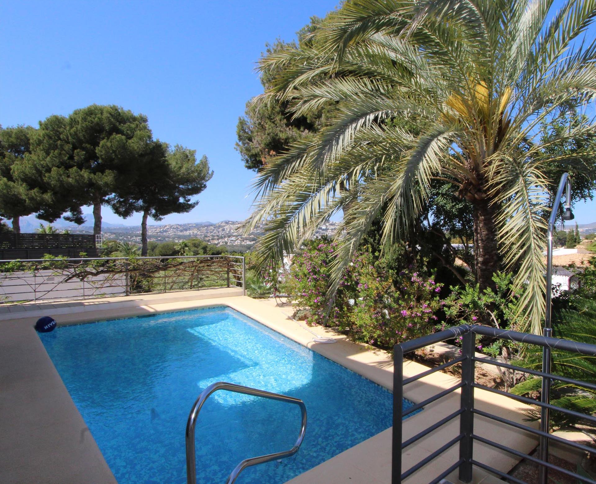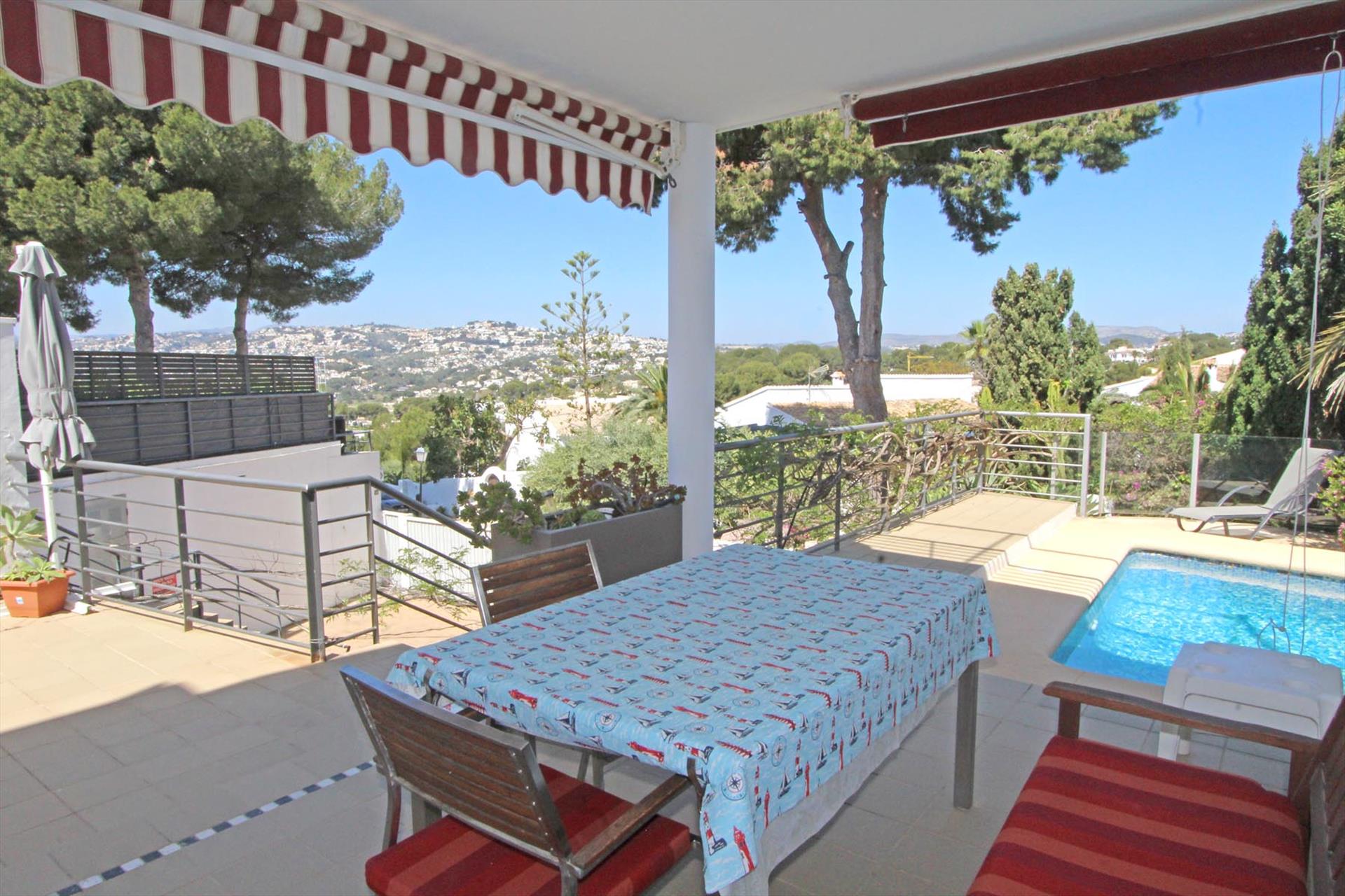 Villa moderne et confortable avec piscine privée à Moraira, Costa Blanca, Espagne, pour 4 personnes. La maison est située dans une zone résidentielle proche de la plage et à 1 km de la plage de Playa L'Ampolla.