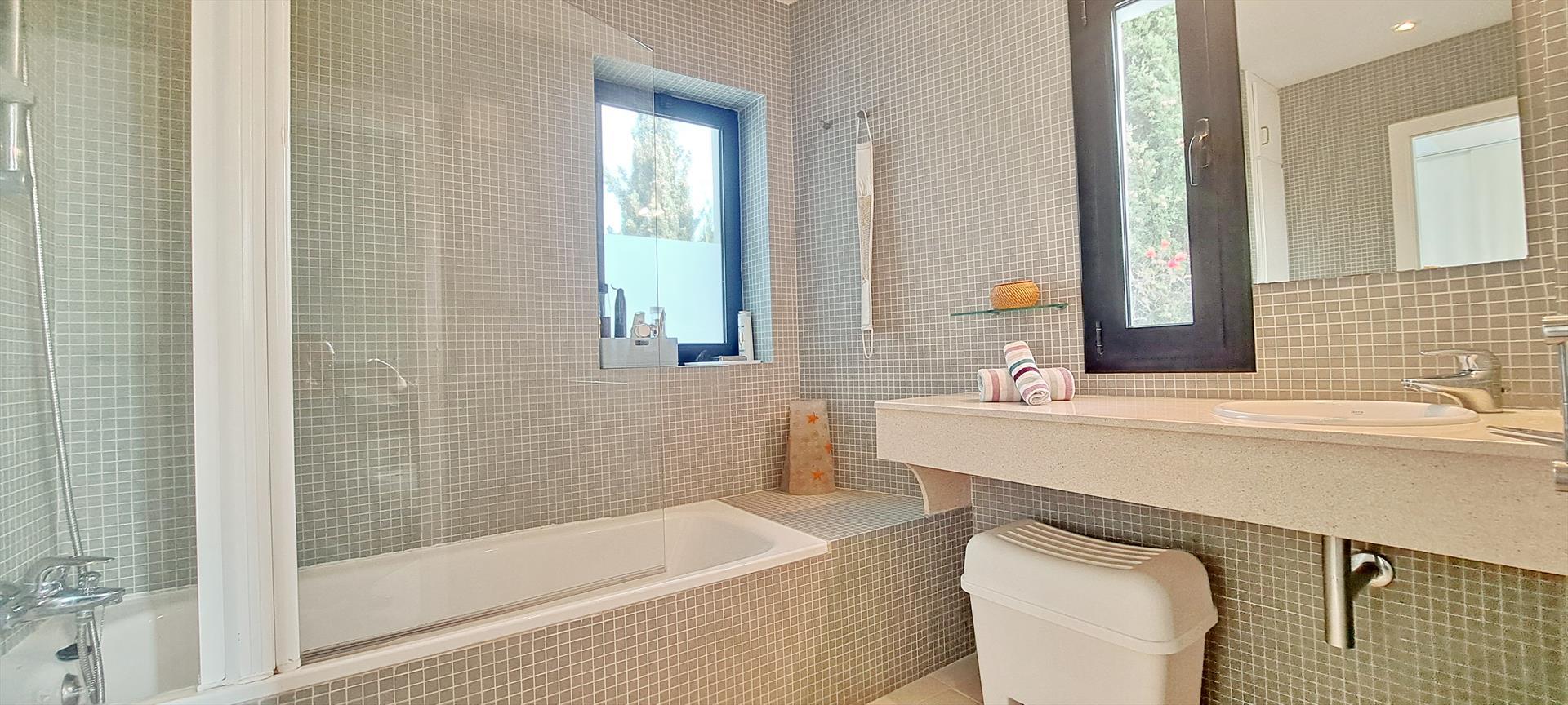 La villa dispose de 3 chambres et 3 salles de bains, réparties sur 2 niveaux. L'hébergement offre intimité, un magnifique jardin gazonné avec des arbres, ainsi que des vues imprenables sur la mer et les montagnes. Son confort et la proximité de la plage, des commerces, des activités sportives, des installations de loisirs, de la vie nocturne, des sites touristiques et de la culture font de cette villa un choix idéal pour passer vos vacances en Espagne en famille ou entre amis.