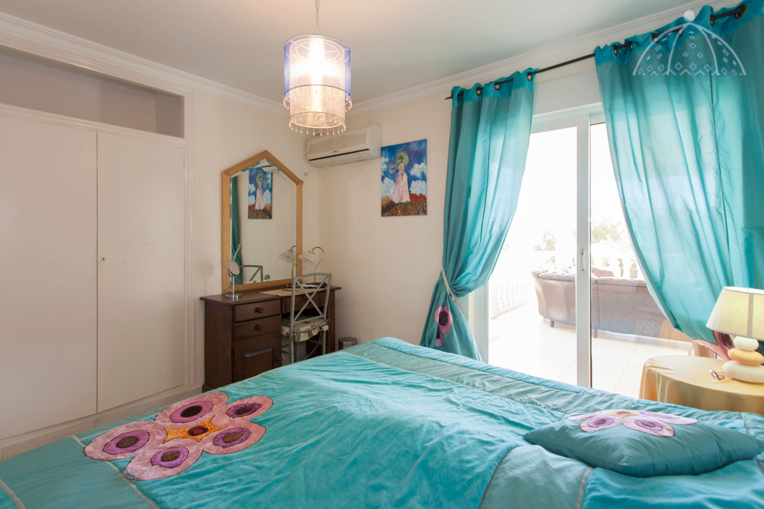 • slaapkamer met airconditioning en tweepersoonsbed