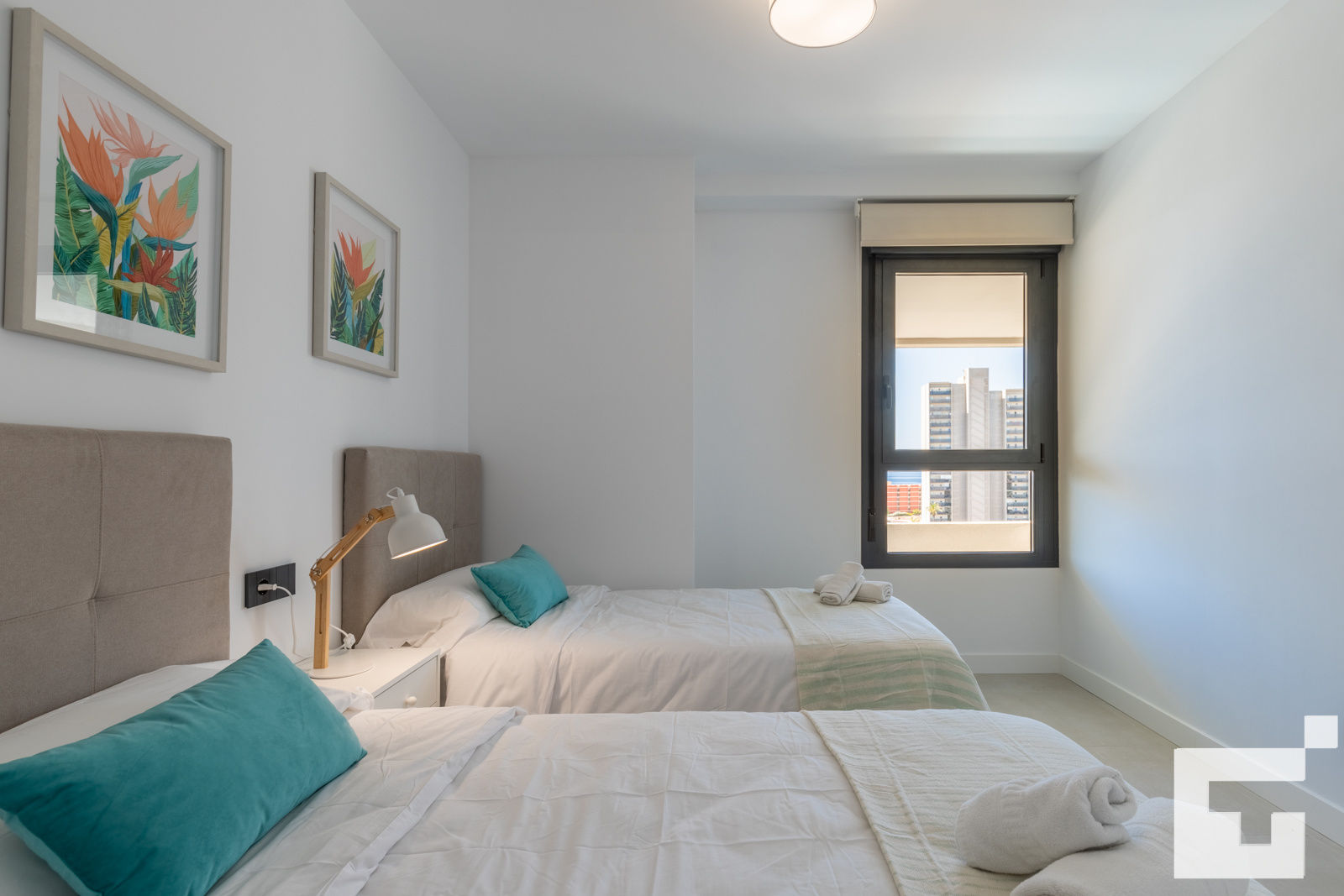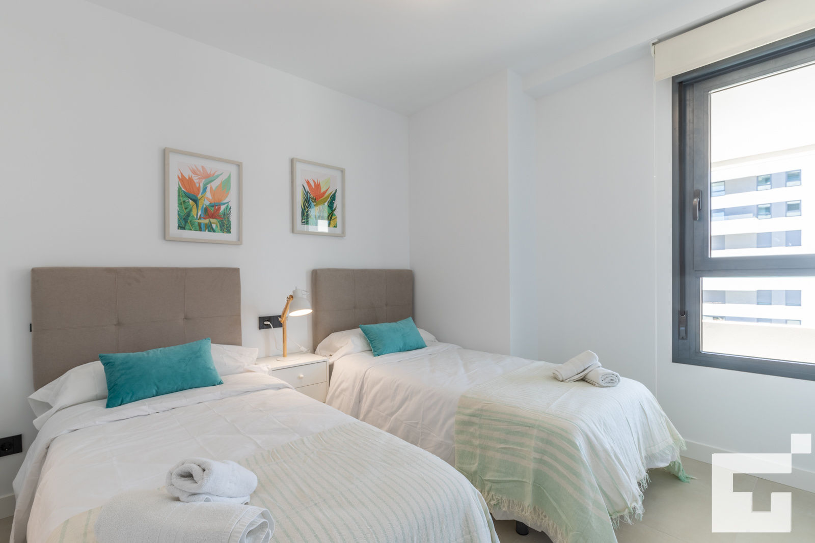 • slaapkamer met airconditioning en 2 eenpersoonsbedden