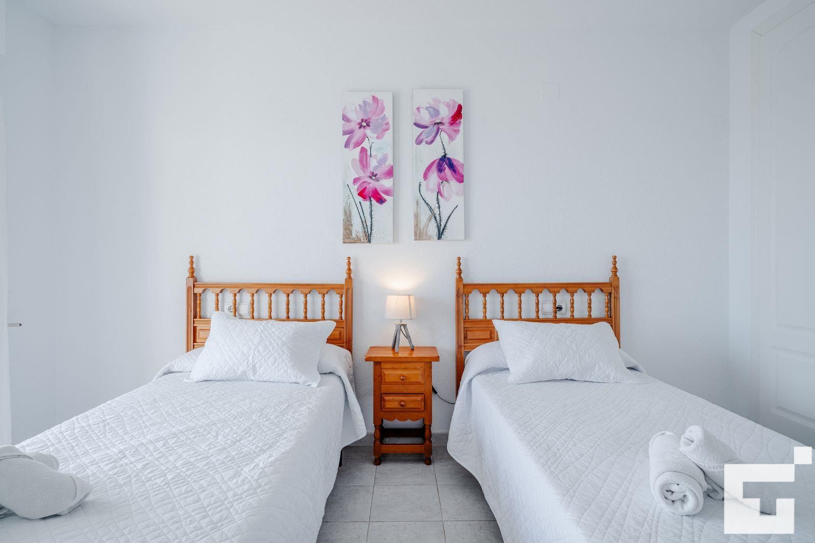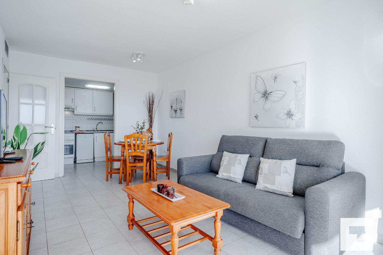 Het appartement heeft 1 slaapkamer en 1 badkamer. De accommodatie biedt privacy, een gemeenschappelijke tuin met gazon en bomen, en prachtige uitzichten op het strand en de zee. Het comfort en de nabijheid van het strand, winkelgebieden, en entertainment mogelijkheden maken dit een fijn appartement om uw vakantie in Spanje door te brengen met familie of vrienden.