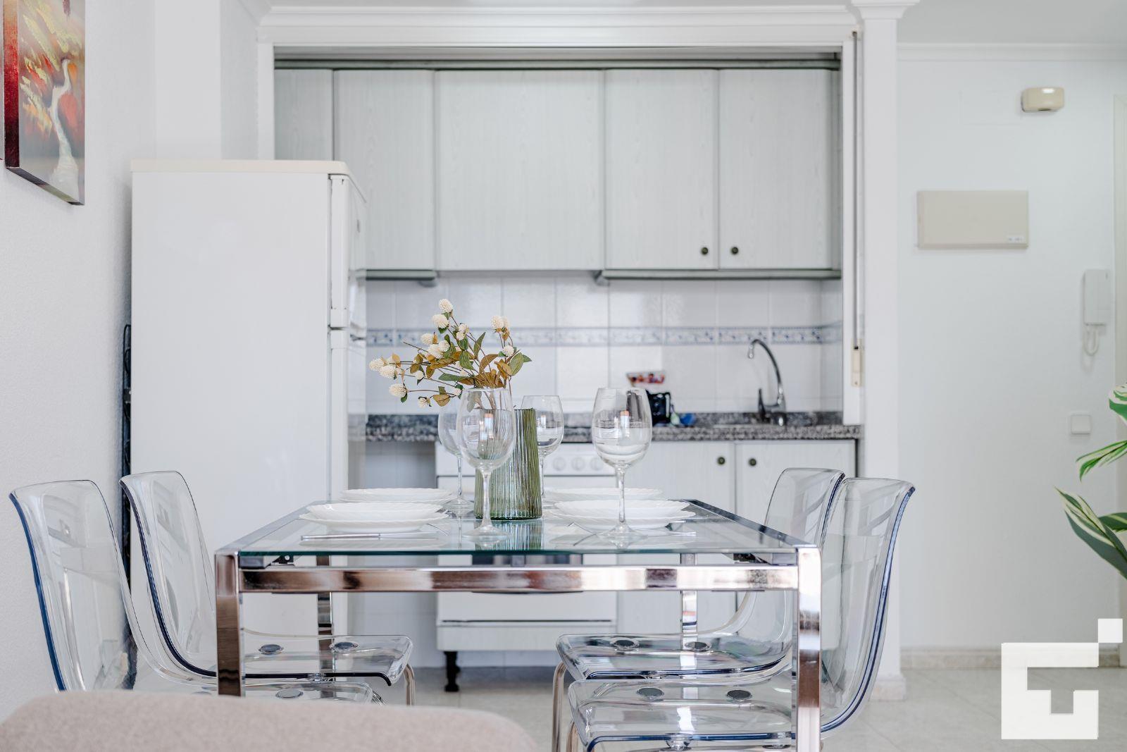 Appartement in Calpe, Costa Blanca, Spanje met gemeenschappelijk zwembad voor 4 personen. Het appartement is gelegen nabij restaurants en bars, winkels en supermarkten, en bevindt zich op 25 m van het La Fossa / Levante strand.